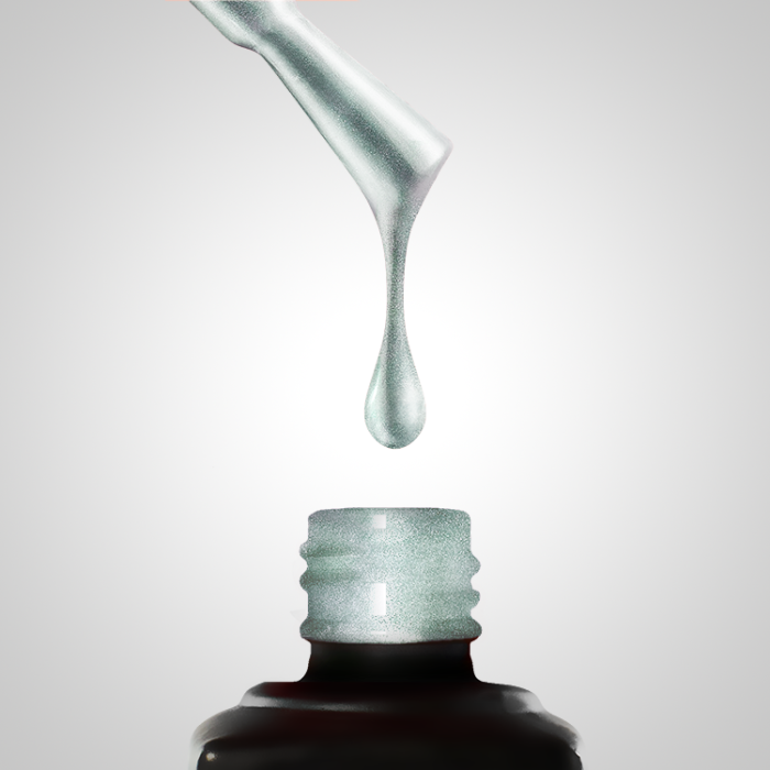 Pistachio Gold er en lys sølvgrøn nuance med et meget originalt udtryk. Ingen dispersion – velegnet både til påføring oven på topcoat og under topcoat.