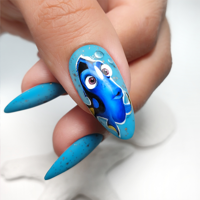 Water Shiny Effect dekorativt støv på udvalgte negle fuldender det originale negledesign. Lagoon har en cremet konsistens, efterlader ingen striber på neglepladen, udjævner sig flot og løber ikke ned i neglebåndene. Hærdning under lampe tager ca. 30 sekunder.
