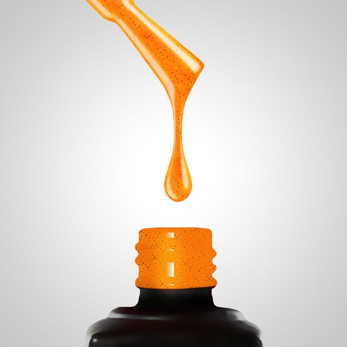 290 Orangeglo er en ekstremt intens neon gelpolish. Den har en klar orange nuance, som passer perfekt sammen med kolde farver og hvid. Den medium-tykke konsistens sikrer en flot selvudjævnende effekt. Orangeglo løber ikke ned i neglebåndene og er nem at arbejde med. Sorte partikler fremhæver neonens dybde og intensitet.