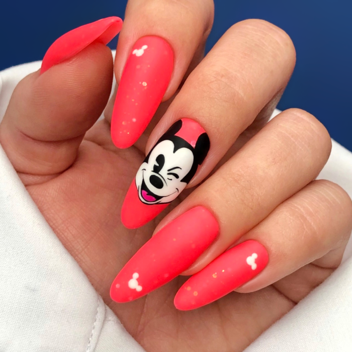 295 Apero er en gelpolish i en lys, koral neon nuance med varm undertone. Den egner sig perfekt til alle varme farver – både neon og pastel – og skaber en smuk kontrast til sort. Gelpolishen indeholder semi-transparente flager, som giver et perlemorsagtigt neon-skær og samtidig giver produktet en medium konsistens.