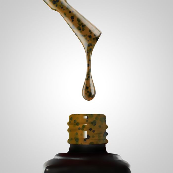 501 Wild Tiger fra Wild Vintage-kollektionen fra Slowianka Nail Trends er et helt unikt og hidtil uhørt produkt. Det er en semi-transparent gelpolish i en intens karamelnuance med indlejrede sorte palietter i forskellige størrelser, som skaber en smuk imitation af rovdyrs pels.