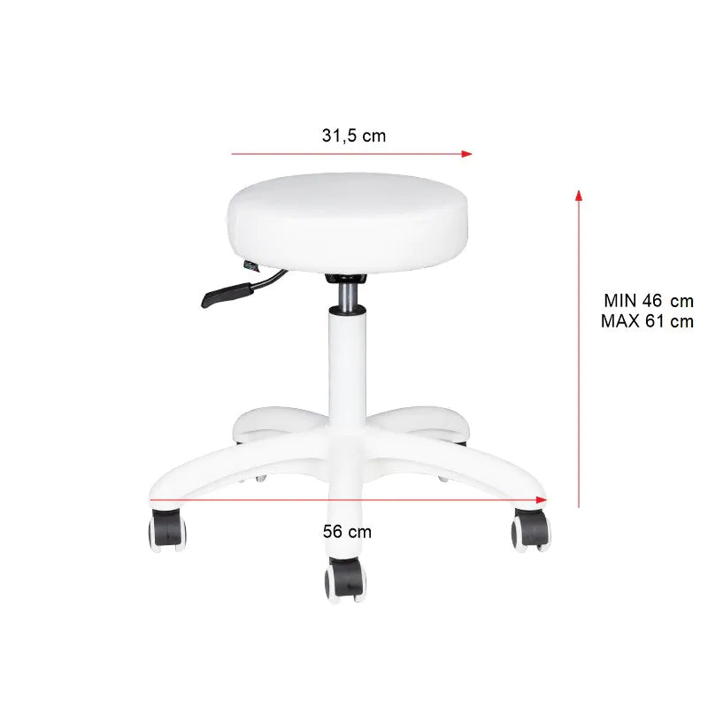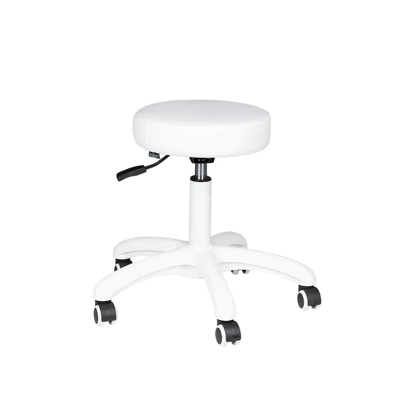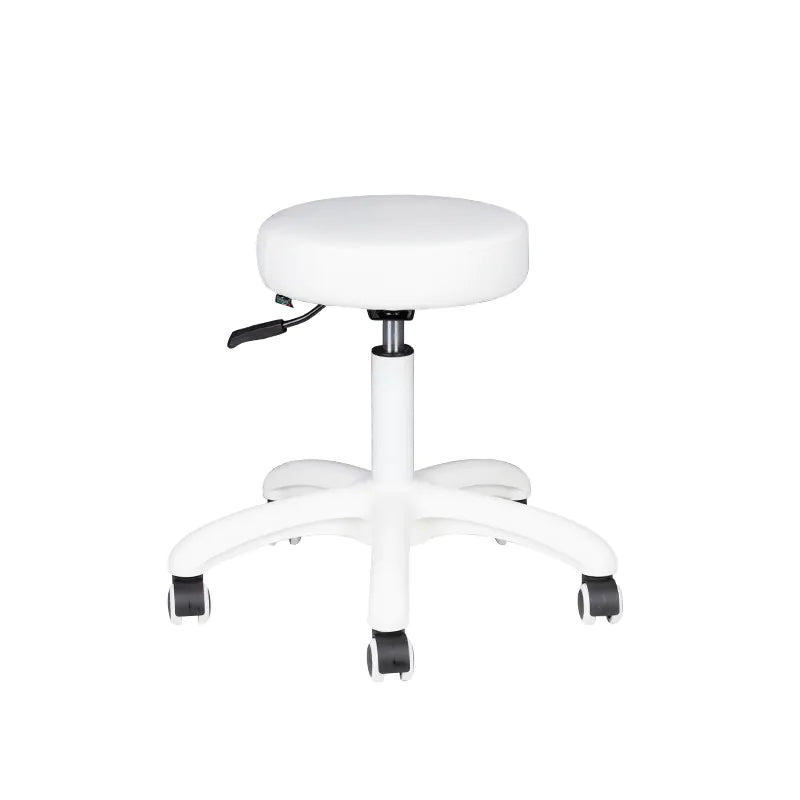 Stabil stol på en femstjernet base med gummibelagte hjul – en nødvendighed i enhver skønhedssalon.
