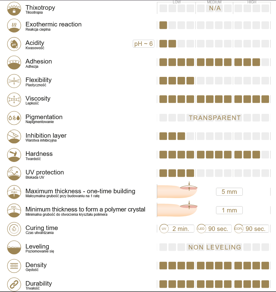 Takket være produktets unikke plasticine-lignende struktur kan negleteknikeren være sikker på, at designs er modstandsdygtige over for skader og samtidig skånsomme mod neglepladen.