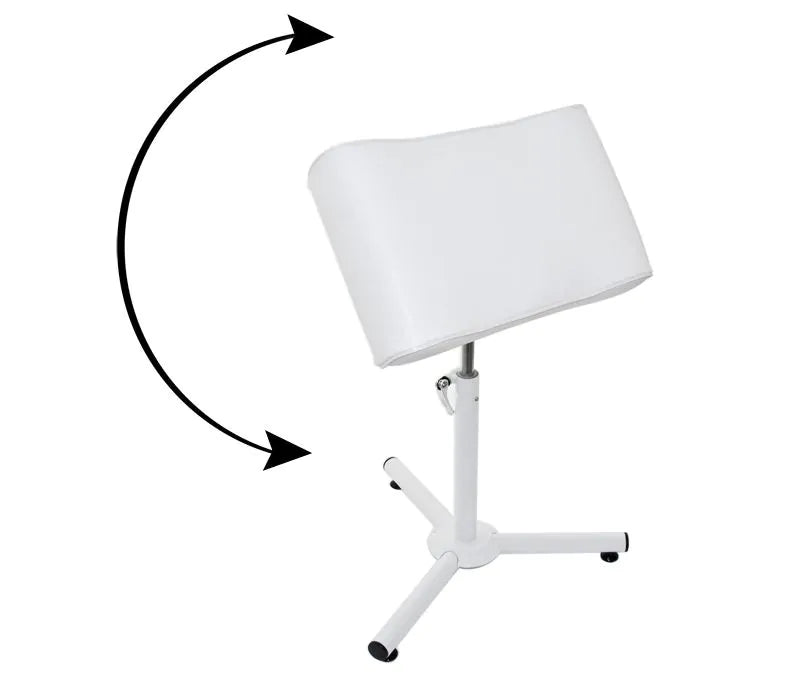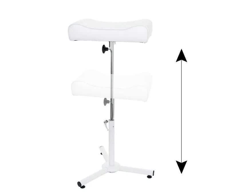 Fodstøtten er vertikalt justerbar og har en justerbar hældningsvinkel på hynden, hvilket gør den nyttig til alle typer behandlinger, ikke kun pedicure. Den har også en stor profileret polstring, der holder benene godt fast.