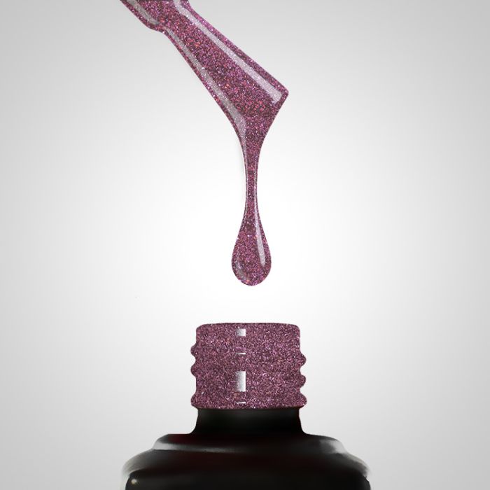 Faith gelpolish er en kraftigt afdæmpet, kølig violet nuance med et strejf af blomme. På den dybe baggrund ses fine glitterpartikler i guld, lilla, grøn, pink og blå. Når lyset rammer disse partikler, opstår en smuk kameleoneffekt – de såkaldte “glitter chameleon colors”.