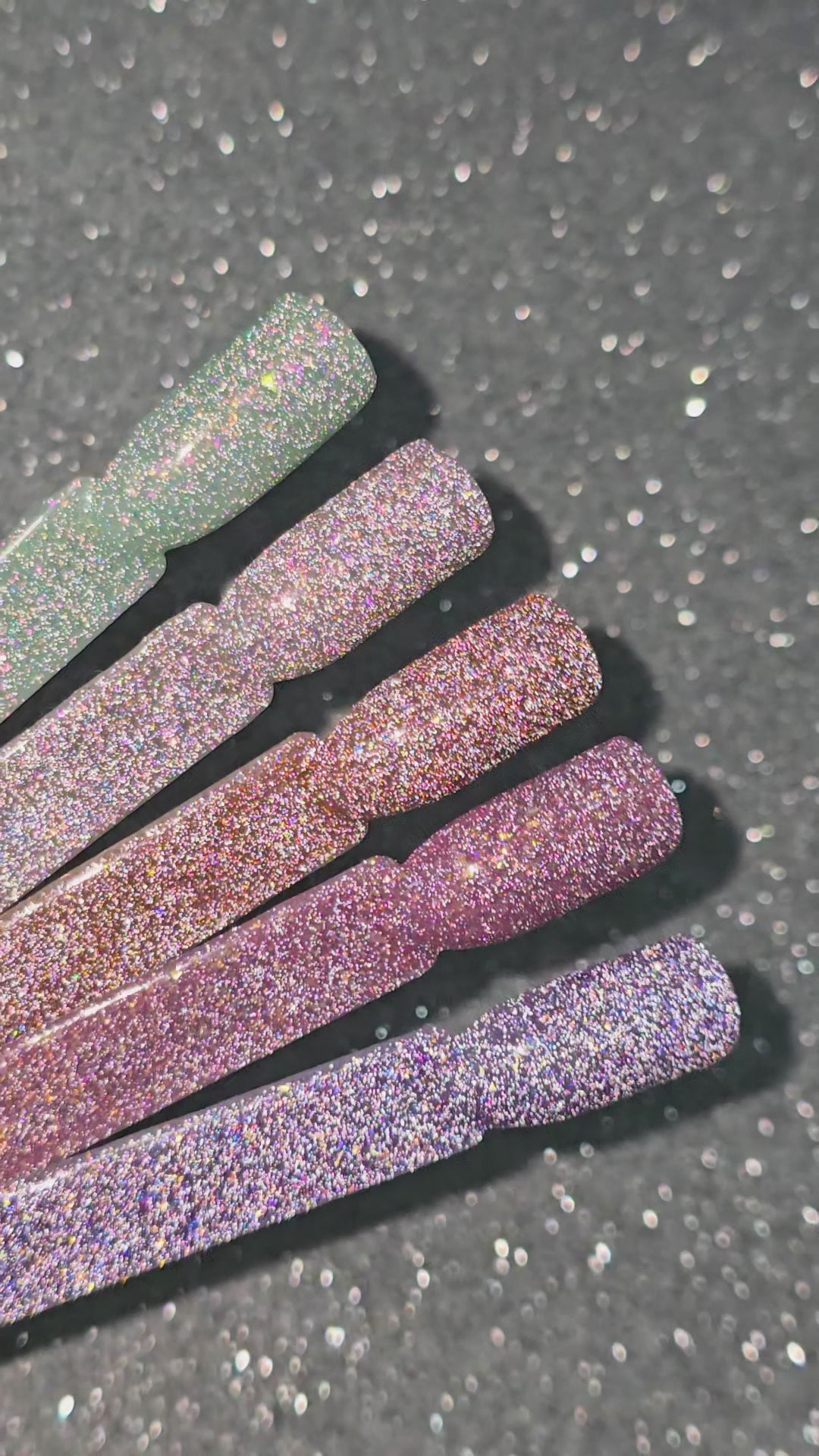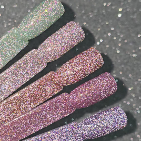 Farverne forvandler sig under forskelligt lys – reflekterende glitter og folieflager smelter sammen og skaber en fantastisk dybde og betagende glans.
