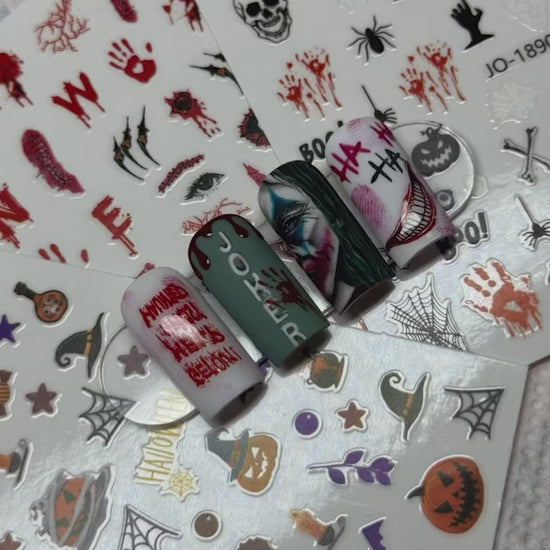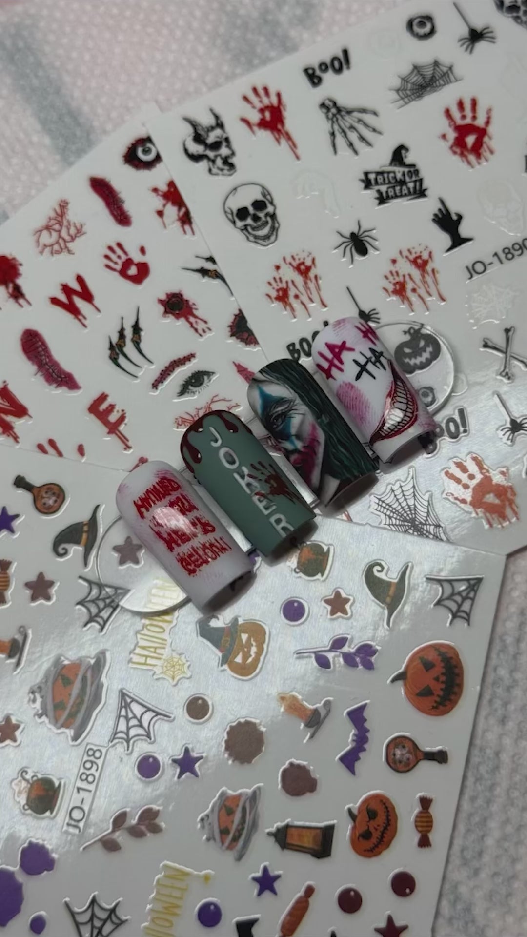 Gør dig klar til Halloween og bring klassiske gyserikoner til live på dine kunders negle! Disse klistermærker er specielt lavet til at tilføje et lynhurtigt, men spektakulært touch til ethvert sæt. Fra hekse og spindelvæv til bloddråber og uhyggelige grin, finder du alt, hvad du behøver for at skabe en virkelig uhyggelig atmosfære.