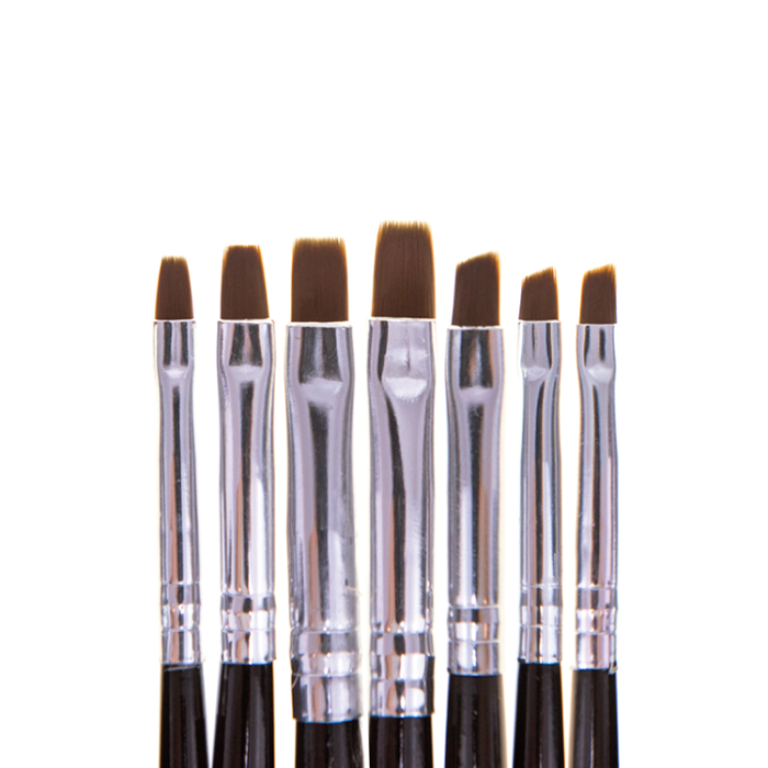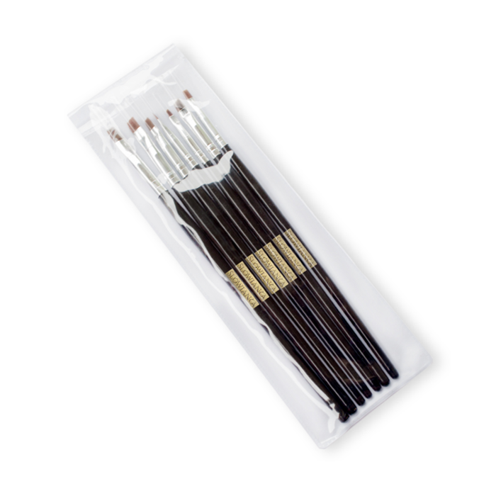 Slowianka Nail Trends One Stroke-sættet består af syv pensler i forskellige former og størrelser. One Stroke dekorationspenslerne fra Slowianka Nail Trends er lavet ved hjælp af en dobbeltbehandlingsteknik, der involverer en blanding af syntetiske og naturlige penselhår.