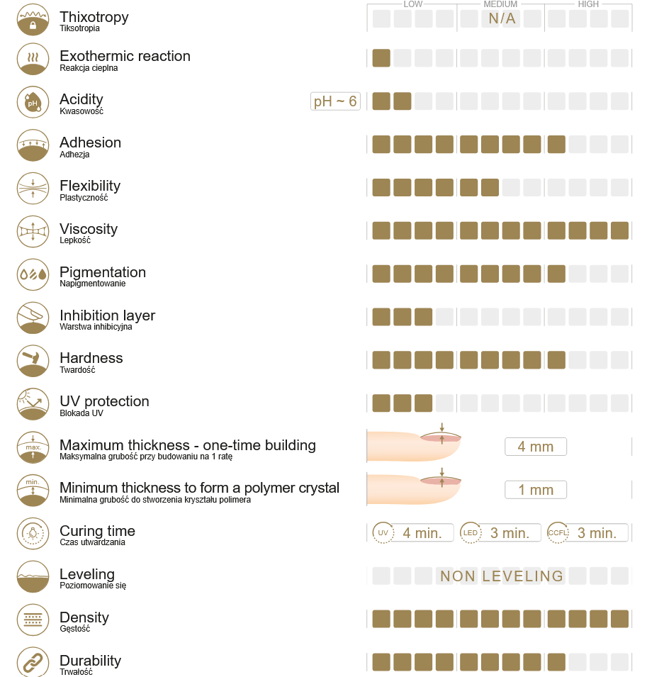 Kombinerer gelens hårdhed med akrylmetodens påføringsteknik. Designs udført med AcryGel er modstandsdygtige over for skader og samtidig meget skånsomme mod neglepladens sarte struktur – uanset negletype.