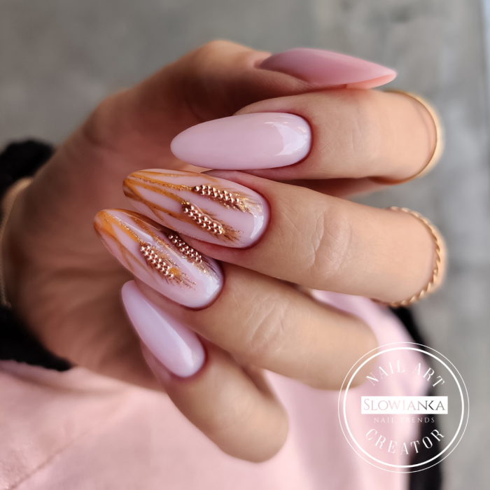 En dækningsbase med 70% opacitet. Det ser meget naturligt ud, med effekten af en naturlig negl nær neglebåndene. Det er et produkt med 2in1-formlen, dvs. base og farve i én. Det kan også påføres en opbygget negl eller anden base som farve. Konsistensen her er medium tyk, cremet.